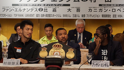 五輪金メダリストの村田の初世界戦とあって、会場には100人を超える報道陣が詰めかけた。その村田を迎え撃つランク1位のエンダムは「私のキャリアの中でも最高の素晴らしいコンディション。こんなに多くの人が集まった記者会見も初めてだ」と会見の盛況ぶりに満足顔。「自分には彼にはない経験がある。勝つのは自分だと自信を持って言える」と暫定を含めて7度目の世界戦に自信を見せた。