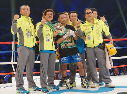 計6度のダウンを奪って勝利の比嘉は「この試合は絶対に倒そうと思っていた。この試合にかける思いは強かった」。具志堅会長は「ほんとに心配でした。でも大吾が世界チャンピオンになると信じていた」と感無量の様子だった。