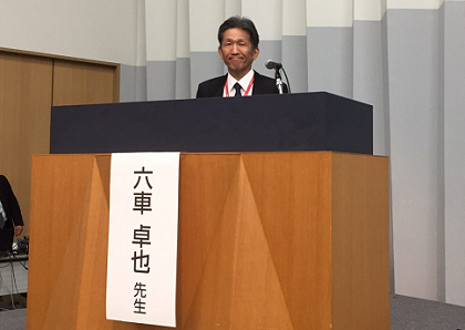 国立国際医療研究センターの國土典宏理事長の司会で壇上に立った六車さんはボクサー、サラリーマン、大学教員生活を語り、移植手術を受けて3年経過したが新たな活躍ができている現状を報告した。