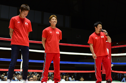 メインイベントの前には大橋ジムの3選手、井上浩樹のいとこでもあるWBO世界S・フライ級チャンピオン井上尚弥、前IBF世界L・フライ級チャンピオン八重樫東、ロンドン五輪銅メダリストで現日本フェザー級10位の清水聡がリングイン。井上が9月9日の米国デビュー戦を報告するなどイベントを盛り上げた。