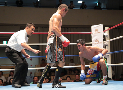 WBO8位につけるサウスポーの荒川は、左右にポジションをずらしながら、リズムよくパンチを上下に散らし、相手に少しずつダメージを与えていった。荒川は挑戦者の荒っぽいパンチをガードではじきながら、パンチに緩急をつけて試合を組み立てていった。