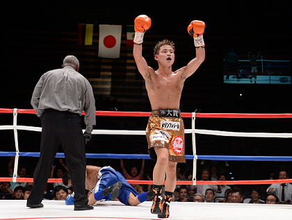 9回が始まるとアルグメドが復活したように見えたが、ここでボディを中心に攻めていた京口が顔面に左フックを炸裂、大きくグラついた王者に襲い掛かり、ついにアルグメドがダウンだ。立ち上がったアルグメドはクリンチ連発でKO負けを何とか逃れた。