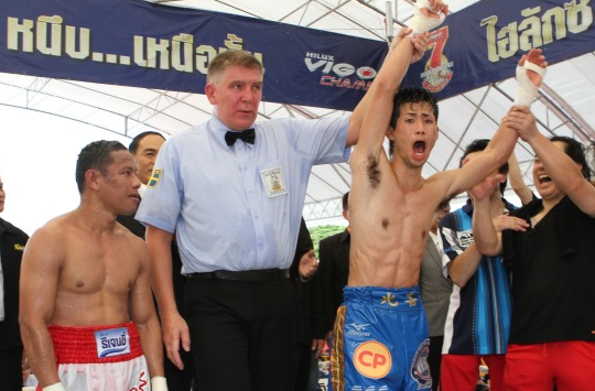 速報 江藤光喜がタイでWBA暫定タイトル獲得 試合情報(日本語) 2013.08.012013.08.03 判定を聞いた瞬間の江藤(右) タイのバンコクで行われたWBAフライ級暫定タイトルマッチは、挑戦者で同級7位の江藤光喜(白井・具志堅S)が3-0の判定で暫定王者コンパヤック・ポープラムック(タイ)を下した。採点は2人が114-113、1人が116-111だった。 試合は序盤から打撃戦の場面が多く、コンパヤックが終盤に消耗。江藤は最終回ラッシュしてダウンを奪い、勝利を決定づけた。
