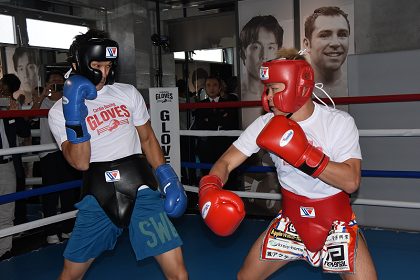 ジム開きの慣例となっている「記念スパー」は、葛西さんがボクシングを指導したこともあり、キックボクシングの世界チャンピオンとして人気のある那須川天心が、日本S・フェザー級王座を返上したばかりの尾川堅一と1ラウンドの攻防を披露した。また来月に世界ミドル級王座に挑む村田諒太が田中繊大トレーナー相手にミット打ちの練習を披露し、大いに盛り上がっていた。