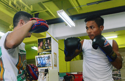 パランポンは2度目の来日。2011年、広島で板垣幸司(広島三栄)に7回KO負けしているが、その後成長を続け、現在14連勝中。この日の練習はミット打ち、シャドーを2ラウンドずつとごく軽めの調整で手の内は見せなかった。しかし、ムエタイで100戦以上戦い、体幹はしっかりしており、左右のパンチは力強さを秘めていた。プロ戦績24勝(10KO)7敗で世界初挑戦。