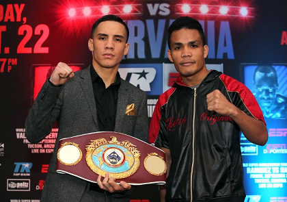 米アリゾナ州ツーソンで22日(日本時間23日)開催されるダブル世界タイトルマッチの記者会見が20日現地で行われ、WBO世界フェザー級タイトルマッチに出場する王者オスカル・バルデス(メキシコ)と挑戦者4位ゼネシス・カシミ・セルバニア(カシミ)が出席した。