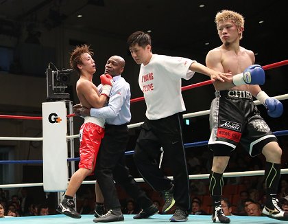 ホープ対決は、ハードパンチャーの松原が初回から千葉に襲い掛かってスタート。これを冷静にしのいだ千葉は2回以降、上と下、内と外を巧みに使い分けて松原にクリーンヒットを打ち込み続けた。松原は5回、勝負に打って出たが、千葉はこれをやりすごすと、左ボディ、アッパーのコンビネーションで松原にダメージを与えるとラッシュ。乱打したところでタオルが投入された。千葉はデビューから無傷の7連勝(6KO)をマーク。松原は7勝7KO2敗。