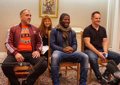WBA世界ミドル級チャンピオンのアッサン・エンダム(仏)が15日午後、羽田空港着の飛行機で来日した。その後、都内のホテルで記者会見を開き、両国国技館で22日に行われる同級1位、村田諒太(帝拳)とのダイレクトリマッチについて抱負を語った。