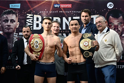 21日(日本時間22日)英国北アイルランドのベルファストでゴングが鳴る世界バンタム級統一戦の計量が20日、同地タイタニックホテルで行われた。WBAユニファイド(統一)王者ザナト・ザキヤノフ(カザフスタン)が117.25ポンド(53.18キロ)、IBF王者ライアン・バーネット(英)は117.4ポンド(53.25キロ)をマーク。リミットの118ポンドを合格した。