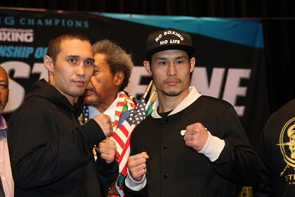 IBF同級3位の近藤は記者会見で、王座を争う同級1位セルゲイ・リピネッツ(ロシア)とフェイスオフを披露。ニューヨークで世界タイトル奪取という快挙に向け「必ずベルトを持って帰りたい」と意気込みを語った。