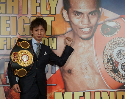 メリンド(37勝13KO2敗)は5月、八重樫東(大橋)に衝撃の初回TKO勝ちで王座を奪取。9月のV2戦で元WBAミニマム級王者エッキー・バドラー(南アフリカ)をきわどい2-1判定で退けている。