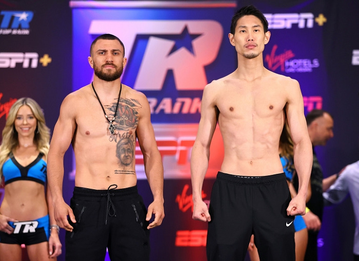 前日本S・フライ級王者で現4位のサウスポー中川が王座陥落から2戦目。スイッチを繰り返すパンチャーに対し、ボディに左ストレートを集める滑り出し。2回に早くもギアを上げ、右フックでダウンを奪うと、さらに左でダウンを追加。3回は開始から倒しにいき、左を振り下ろしてパンチャーを沈め、主審が即ストップした。中川は15勝11KO3敗1分。パンチャーは8勝3KO3敗。