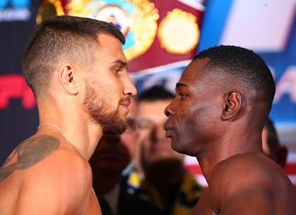 ニューヨークのマジソン・スクエア・ガーデンで9日(日本時間10日)ゴングとなるWBO世界S・フェザー級タイトルマッチの前日計量が現地で行われ、王者ワシル・ロマチェンコ(ウクライナ)が129ポンド(58.51キロキロ)、挑戦者でWBA世界S・バンタム級スーパー王者ギジェルモ・リゴンドウ(キューバ)が128.4ポンド(58.24キロ)でリミットの130ポンドをクリアした。