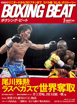 ボクシング・ビート最新1月号が15日、全国の書店で発売となりました。表紙は日曜日にラスベガスで行われたIBF世界S・フェザー級王座決定戦。三原正以来36年ぶりに米国で王座奪取を果たした新チャンピオン尾川堅一の試合は、現地リングサイドから三浦勝夫米国通信員がリポートしています。また同日ニューヨークで開催されたロマチェンコ-リゴンドウの速報もお楽しみください。