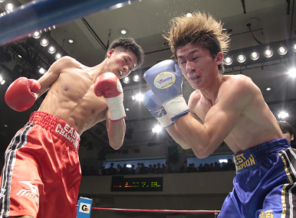 サウスポーの今川は初回から左右のフックで積極的に攻め、初回終了間際に右フックを効かせるなど優位に立った。右を狙うあまり手数の少なかった松浦は3回からコンビネーションで攻めて追い上げてが、ボディ攻めも見せた今川が逃げ切った。2度目の挑戦で全日本新人王獲得の今川は8勝2KO3敗。松浦は5勝1KO1敗。