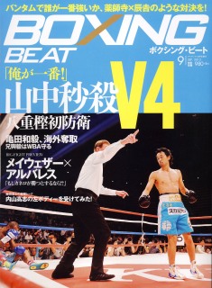 ボクシングビート9月号が19日発売となりました。今月号は衝撃的なKO防衛を飾った山中慎介と、フライ級初防衛を成功させた八重樫東のダブル世界戦特報を巻頭に持ってきました。9月14日に行われる注目のビッグマッチ、メイウェザー×アルバレスの最終プレビューはもちろん、8月25日に行われる村田諒太のデビュー戦、井上尚弥の日本タイトル初挑戦もみっちり展望しています。両雄と拳を交える柴田明雄&田口良一には「誌上作戦会議」をしてもらいました。