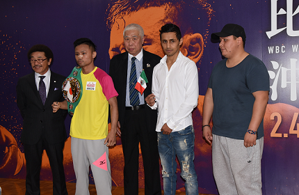 WBC世界フライ級タイトル戦を2日後(4日夜)に控え、チャンピオンの比嘉大吾(白井具志堅スポーツ)と挑戦者フエンテス(メキシコ)両選手が出席の記者会見が2日昼、那覇市内のホテルで開かれた。