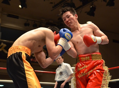 前半は小野木。的確なジャブから右をつなげて試合をリードした。しかし4回、木下が右フックで小野木の左目を切り裂くと、5回に右カウンターを決めてフィニッシュ。逆転勝ちを収めた。
