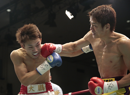 チャンピオンカーニバルの開幕戦となった日本S・フェザー級タイトルマッチが3日夜、後楽園ホールで行われ、チャンピオン末吉大(帝拳)が1位挑戦者の大里拳(大鵬)に8回2分25秒TKO勝ち。高畑里望(ドリーム)との決定戦で獲ったタイトルの初防衛に成功した。
