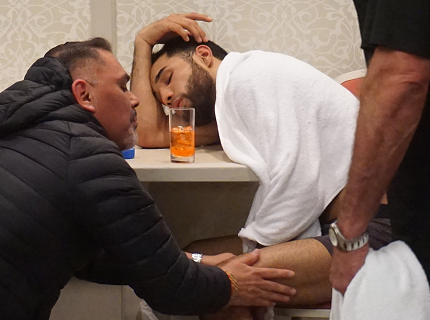 ネリは1回目の計量から約1時間45分にわたり、縄跳びなどで汗を出し、1キロ減らしたものの、これでギブアップ。秤を下りるとすぐに水分補給をし、そのまま椅子に座って15分ほど動けずにぐったりした。