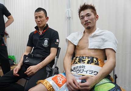 KOを宣言していた阿部はベルトラインに記した「天才♪」を見やり「♪なんてつけてる場合じゃないですね。?に戻そうかな」と苦笑いしていた。17勝8KO2敗。昨年10月、札幌で岡本ナオヤ(東拳)にまさかの初回KO負けした渡部は連敗ながら復調を感じさせる出来。戦績は6勝3KO4敗。