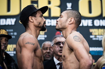 昨年5月の初戦でウスカテギが終了ゴングのパンチで失格負け。ディレルのセコンドが乱入してパンチを見舞うトラブルを受けての直接リマッチ。しかしフェイスオフ後、両者は握手をして健闘を誓い、遺恨はなさそうだ。Photos from Amanda Westcott/SHOWTIME