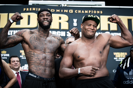 明日3日(日本時間4日)ニューヨークのバークレイズセンターで挙行されるWBC世界ヘビー級タイトルマッチの計量が2日行われ、王者デオンタイ・ワイルダー(米)が214ポンド1/4(97.41キロ)、挑戦者3位ルイス・オルティス(キューバ)が241ポンド3/4(109.43キロ)を計測した。身長、リーチでアドバンテージがあるワイルダーは体を絞り、オルティスより約12キロ軽いウエートだった。
