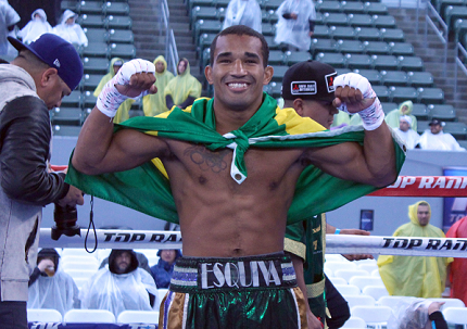また、前座ではロンドン五輪ミドル級決勝で現WBA世界王者の村田諒太(帝拳)に惜敗して銀メダルのWBAミドル級13位、エスキバ・ファルカン(ブラジル)がサリム・ラルビ(仏)に1回2分6秒KO勝ち。デビューからの連勝を20(14KO)に伸ばした。Photos/SUMIO YAMADA