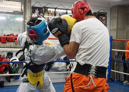 デビューから15連続KO勝利をマークしている比嘉が日本新記録となる16連続KO勝利をかけてV3戦のリングに上がる。この日は15連続KO記録を持つ、比嘉あこがれの浜田剛史氏がジムを訪れ、「全KOというのは一般の人にもわかりやすい。16を狙う、17を狙うではなく、これからもすべてKOを狙ってほしい」と沖縄の後輩を激励した。