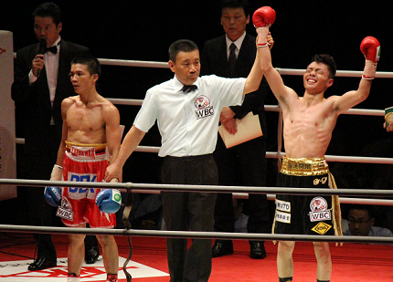 スコアは97-92×2、96-93。自身初のタイトルを獲得した20歳の池間は11勝9KO3敗。モンコルは7勝7KO3敗。