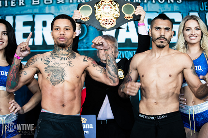 昨年8月の防衛戦で体重超過によりIBF王座をはく奪されたデイビスは3試合ぶりに計量1回目で合格。試合はWBA“スーパー”王が争われることになった。同“レギュラー”王者にはアルベルト・マチャド(プエルトリコ)が君臨する。Photos:Amanda Westcott/SHOWTIME