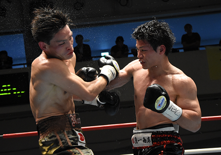 長身の野中はジャブと軽い左、井上は右ボディブローを狙う立ち上がり。スタートはともに相手の出方を探った。前に出なければ始まらない井上は3回にペースアップ。グッと距離を詰めて左右のフック、離れ際のパンチで野中にプレッシャーをかける。野中も負けじと4回に左ストレートをカウンターで決めた。