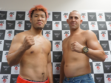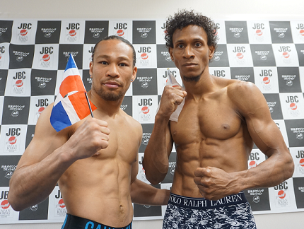 セミの日本S・ライト級タイトルマッチは、王者の細川バレンタイン(角海老宝石)、挑戦者1位のデスティノ・ジャパン(ピューマ渡久地)ともに63.2キロでリミットの63.5キロをクリアした。