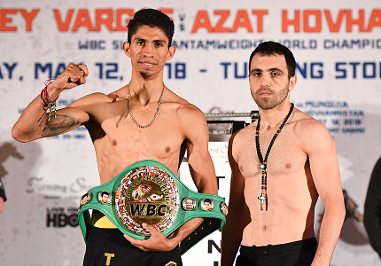 同じリングのWBC世界S・バンタム級戦は王者レイ・バルガス(メキシコ)が120ポンド(54.43キロ)、挑戦者アザト・ホフハニスヤン(米)が121ポンド(54.88キロ)を計測しリミット122ポンドをパス。