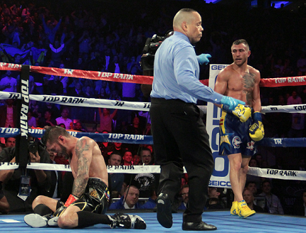 12日(日本時間13日)ニューヨークのマジソンスクエアガーデンで挙行された注目のWBA世界ライト級タイトルマッチは王者ホルヘ・リナレス(帝拳=ベネズエラ)が挑戦者でWBO・S・フェザー級王者のワシル・ロマチェンコ(ウクライナ)に10回2分8秒TKO負け。4度目の防衛に失敗した。リナレスは6回にダウンを奪う見せ場もつくったが、“ハイテク”ロマチェンコの軍門に下った。