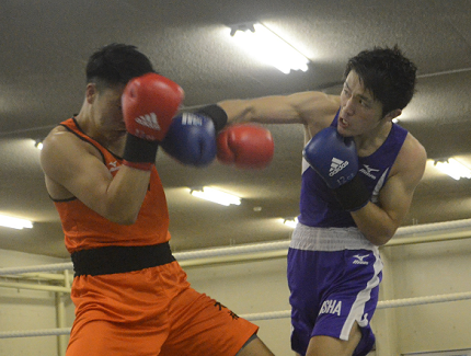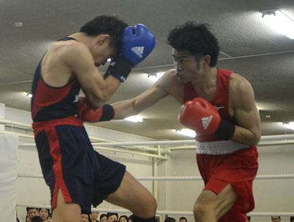 ライトの西村連(4年)が千葉拳大(1年)の粘りにあったが、終始攻めて5連勝で勝負を決めた。サウスポーの玉城康平(2年)も渡部夏志(1年)に手数で上回った。L・ウェルターは主将の平仲信裕(4年)がボディ連打で1回1分28秒ストップ勝ち。ウエルター・大内舜也(4年)も本島翼(1年)に競り勝った。