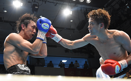 日本S・ウェルター級4位の長濱がウェルター級に下げて同級6位のサウスポー永野と対戦。体格で勝る長濱が圧力をかけたが、2回に永野の左をもらって右目下から出血。機動力で勝る永野がリードして迎えた4回、永野が左を決めると、長濱も右を決めて反撃した。