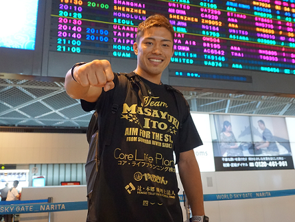 7月29日(日本時間30日)米フロリダ州キシミーでゴングとなるWBO世界S・フェザー級王座決定戦で同級1位クリストファー・ディアス(プエルトリコ)と対戦する同2位の伊藤雅雪(伴流)が2日、成田空港から合宿先のロサンゼルスに出発した。伊藤はこのまま帰国せず、24日にフロリダ入りする。
