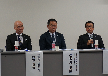 同会が強く糾弾している審判不正については、新潟県連副理事長でアトランタ五輪代表の仁多見史隆氏が「“奈良判定”という言葉がひとり歩きしてしまい、審判不正とは関係なら奈良の選手にご迷惑をおかけしました」と最初に謝罪した。