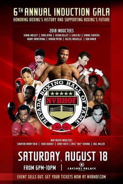 前者はシェーン・モズリー(3階級制覇王者)、クリス・バード(ヘビー級王者)、レイラ・アリ(女子S・ミドル級王者)、ケビン・ケリー(フェザー級王者)、アーニー・シェーバース(ヘビー級コンテンダー)、ジェリー・ロス(ジャッジ)、ハリー・リード(ネバダ州選出議員)、トッド・デュボーフ(トップランク社長)、ドン・マイナー(ネバダ州ウェルター級王者)の9人。