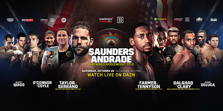 米ボストンのTDガーデンで10月20日ゴングとなるイベントは、英国のマッチルーム・ボクシング主催で、DAZN(ダゾーン)が米国でストリーミング配信をする第2弾。WBO世界ミドル級タイトルマッチ、王者ビリー・ジョー・サンダース(英)vs挑戦者1位デメトゥリアス・アンドラーデ(米)を筆頭に力の入ったカードが用意された。
