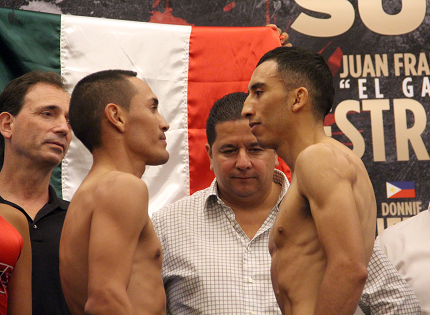 メインのメキシカン対決はSUPERFLYに連続出場の元フライ級統一王者フアン・フランシスコ・エストラーダが114.4ポンド(51.89キロ)、以前オマール・ナルバエスに2度挑んだフェリペ・オルクタが114ポンド(51.71キロ)をマーク。試合はWBC・S・フライ級挑戦者決定戦として行われる。