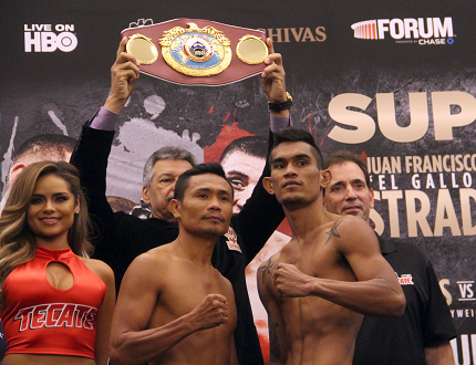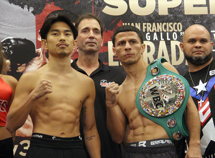 7日、シェラトンLAXホテルで行われた計量で井岡は114.6ポンド(51.98キロ)、アローヨは114.4ポンド(51.89キロ)を計測。S・フライ級リミット115ポンドをクリアした。試合はアローヨが保持するWBC・S・フライ級シルバー王座が争われる。