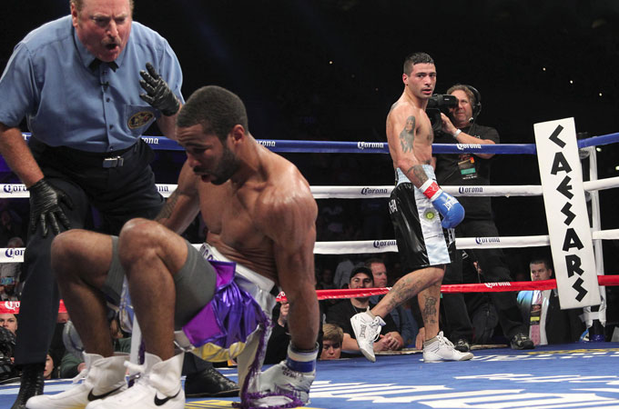 またしてもマティセーの強打が爆発した。18日夜(日本時間19日)米アトランティックシティのボードウォーク・ホールで行われた12回戦で、WBC・S・ライト級暫定王者ルーカス・マティセー(アルゼンチン)が同級IBF王者ラモント・ピーターソン(米)に3回2分14秒TKO勝ちを飾った。