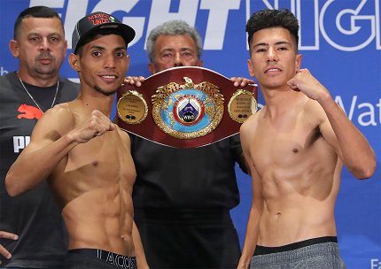 WBO世界L・フライ級タイトルマッチの計量が12日行われ、王者アンヘル・アコスタ(プエルトリコ)がリミットの108ポンド(48.97キロ)、挑戦者11位アブラハム・ロドリゲス(メキシコ)が107.8ポンド(48.90キロ)で合格した。試合は明日13日(日本時間14日)ラスベガスのハードロック・ホテル&カジノで挙行される。