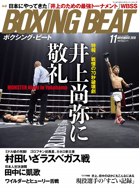 巻頭は井上がスーパー・パフォーマンスを演じた横浜アリーナのWBSSを大特集。日本初上陸となったWBSSの舞台裏もルポしました。拳四朗が強敵メリンドを退けたWBC・L・フライ級タイトルマッチも詳しくレポートしています。