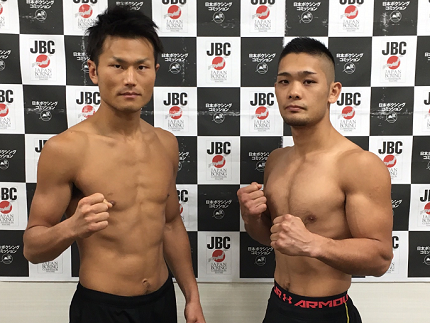 同じリングでは日本ミニマム級挑戦者決定戦も行われ、同級1位の榮拓海(折尾=19勝13KO2敗1分)が47.5キロ、同2位の田中教仁(三迫=16勝9KO7敗)がリミットの47.6キロであすの試合に進んだ。