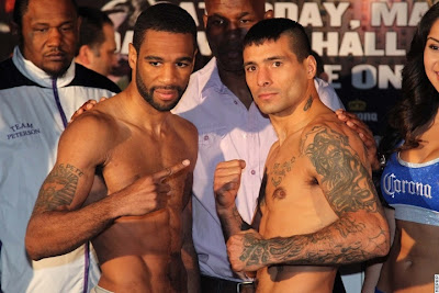 米国アトランティックシティのボードウォークホールで明日18日(日本時間19日)に挙行される141ポンド契約の12回戦(スーパーライト級リミット1ポンド超過)の計量が17日、同地のシーザース・アトランティックシティ・ホテルで行われた。結果はIBF世界S・ライト級王者ラモント・ピーターソン(米)が141ポンド(63.96キロ)、同級WBC暫定王者ルーカス・マティセー(アルゼンチン)が140ポンド(63.5キロ)だった。