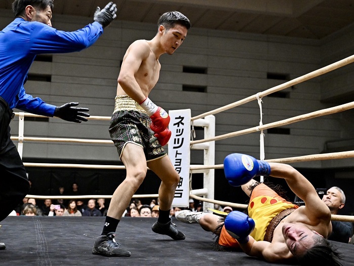 2回の攻防で右目をカットしたカバラウスカスは3回、一気にスパート。右で倒しフルカウントを聞かせた。KOタイムは3分。