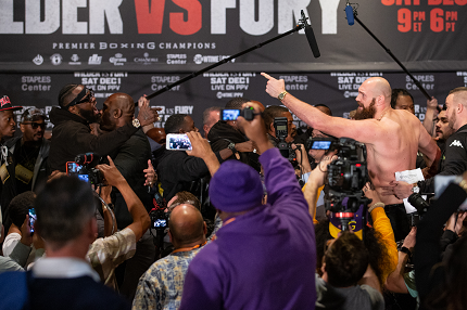10月初旬のプレゼンツアーでもフューリーの挑発にワイルダーがキレて会見が中断。最後は乱闘寸前で幕が降りたが、この日も壇上のフェイスオフで両者はエキサイト。またもセキュリティたちが登場し、2人を鎮圧した。果たして明後日の計量、実際のリングではどうなるか予断を許さない。以下は本日の両者のコメント。